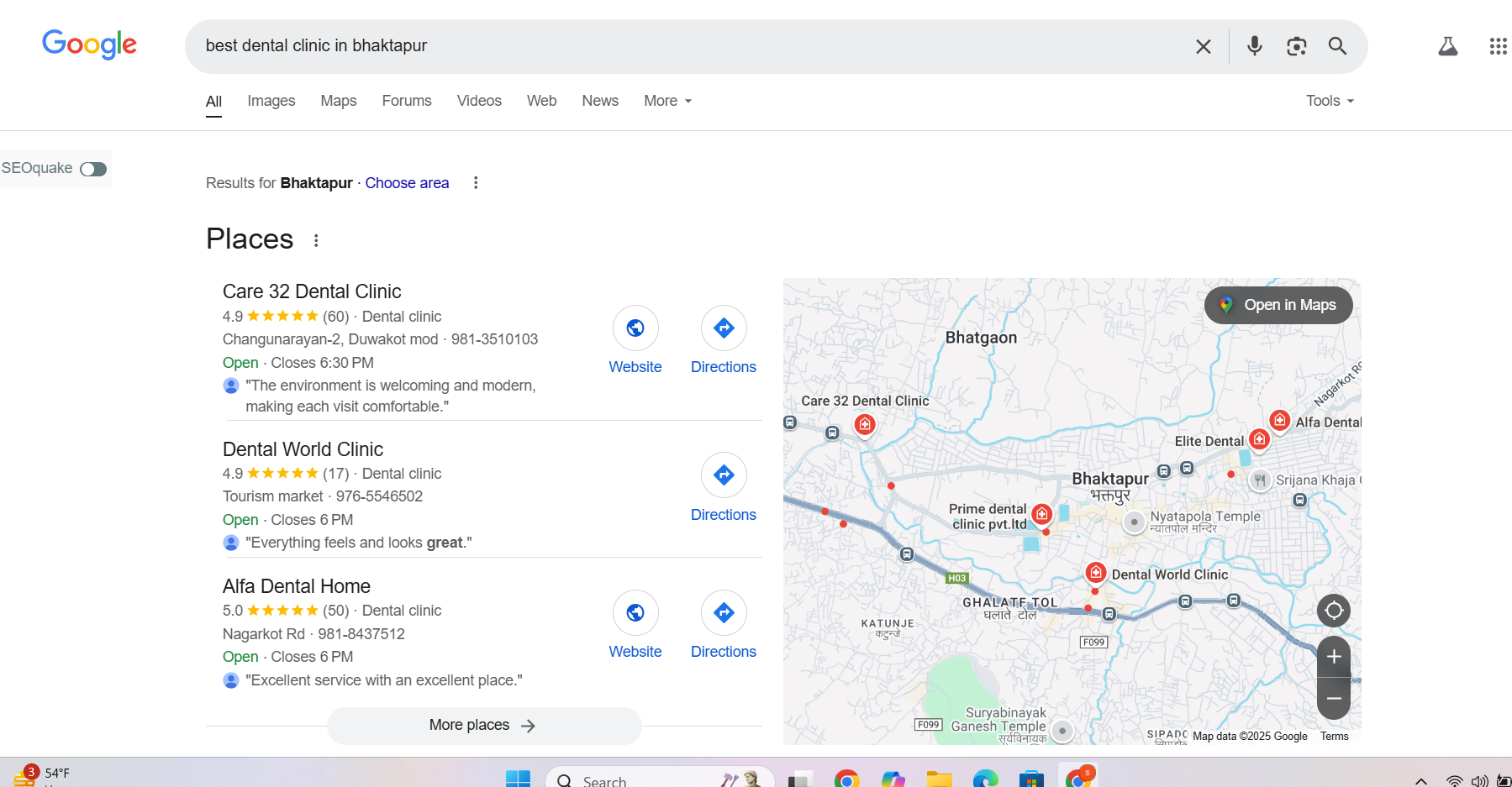 For example when you search “Best dental clinic in Bhaktapur or dental clinic in Bhaktapur”: